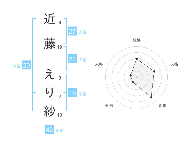 近藤 えり紗さんの総格は42画の3点!