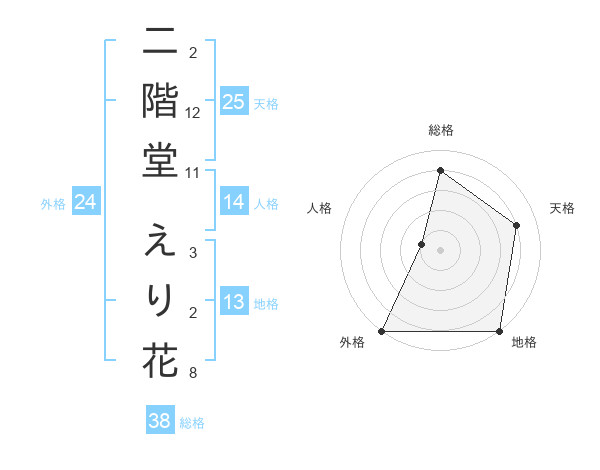 二階堂 えり花さんを姓名の画数から五運を鑑定