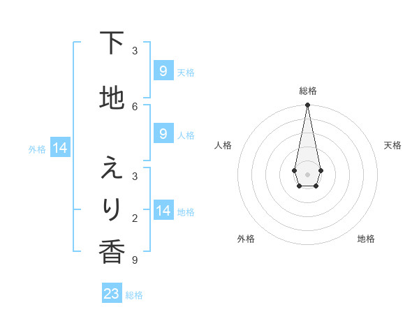 下地 えり香さんの総格は23画の5点!