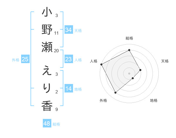 小野瀬 えり香さんの総格は48画の4点!