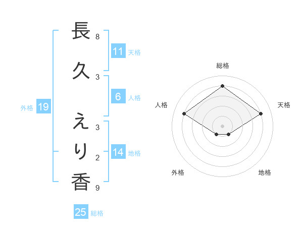 長久 えり香さんの総格は25画の4点!