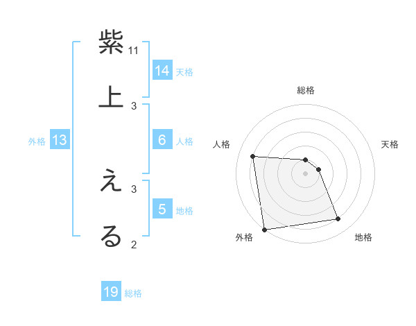 紫上 えるさんの外格は13画の5点!