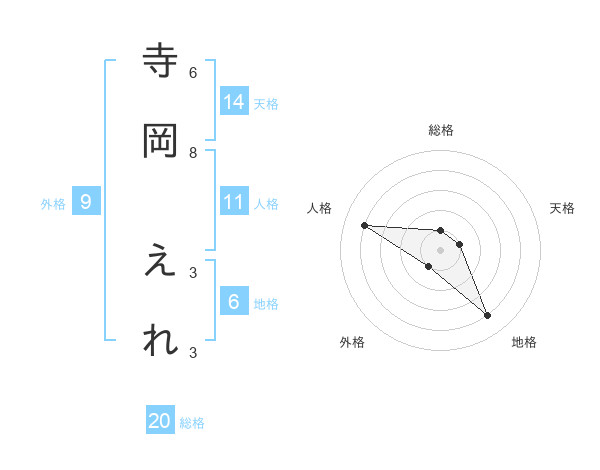 寺岡 えれさんの総格は20画の1点!