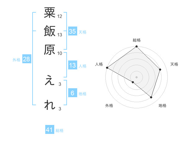 粟飯原 えれさんを姓名の画数から五運を鑑定