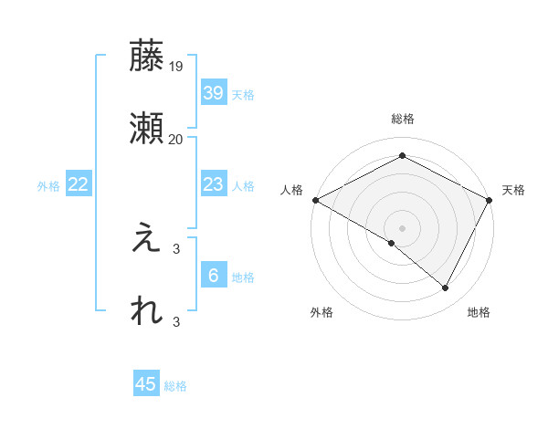 藤瀬 えれさんの総格は45画の4点!