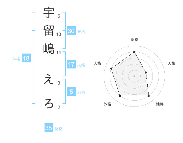 宇留嶋 えろさんを姓名の画数から五運を鑑定