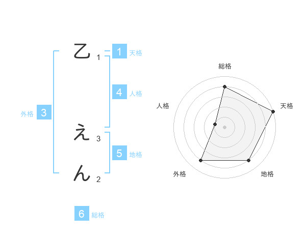 乙 えんさんの天格は1画の5点!