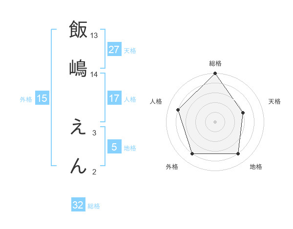 飯嶋 えんさんの総格は32画の5点!