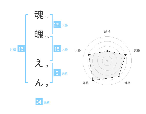 魂魄 えんさんの外格は16画の5点!