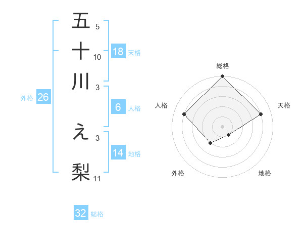 五十川 え梨さんを姓名の画数から五運を鑑定