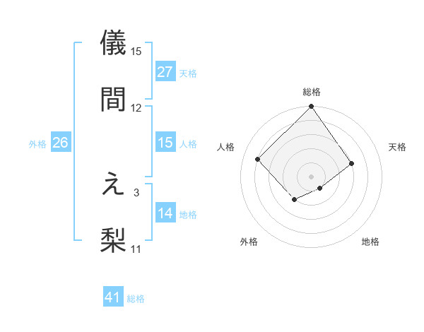 儀間 え梨さんの天格は27画の3点!