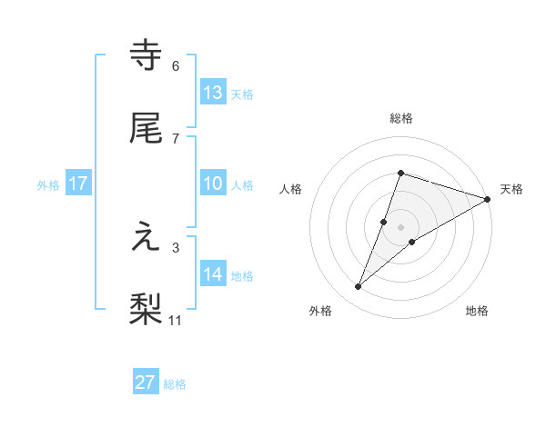 寺尾 え梨さんの天格は13画の5点!