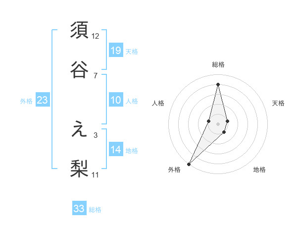 須谷 え梨さんの外格は23画の5点!