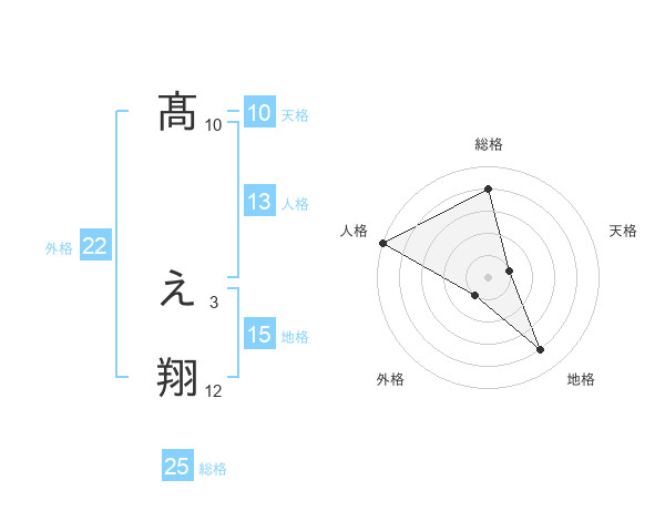 髙 え翔さんの総格は25画の4点!