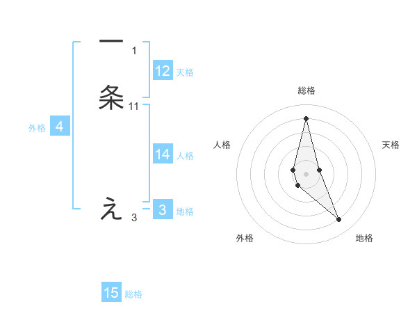 一条 えさんの総格は15画の4点!