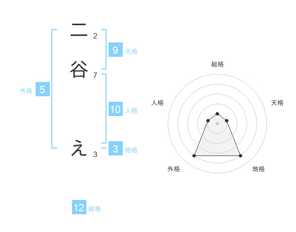 二谷 えさんの外格は5画の4点!