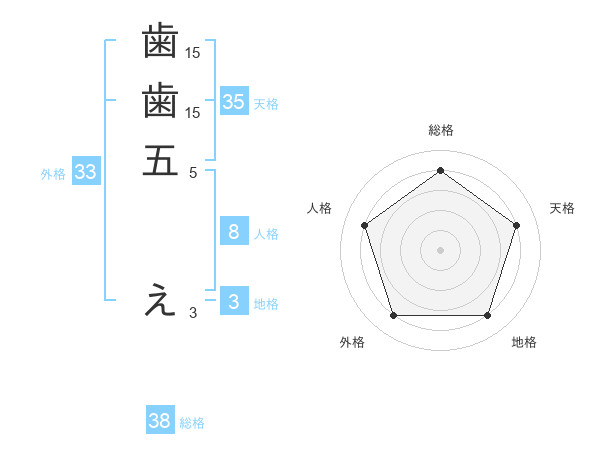 歯歯五 えさんを姓名の画数から五運を鑑定