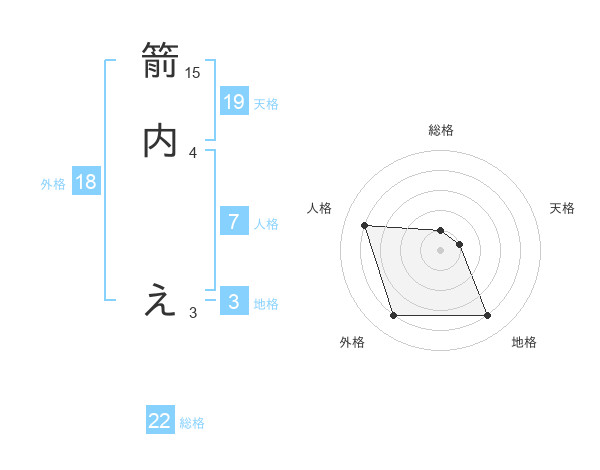箭内 えさんの総格は22画の1点!