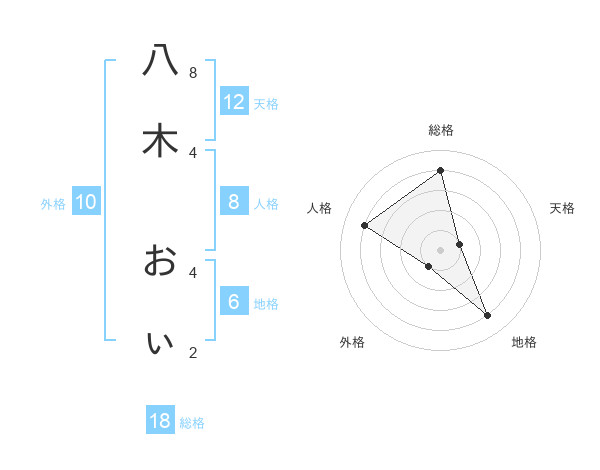 八木 おぃさんの総格は18画の4点!