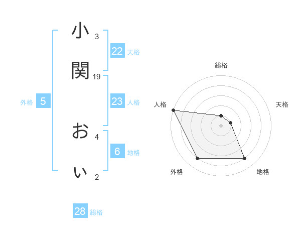 小関 おぃさんの総格は28画の1点