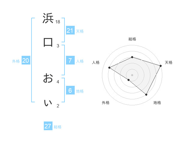 浜口 おぃさんを姓名の画数から五運を鑑定