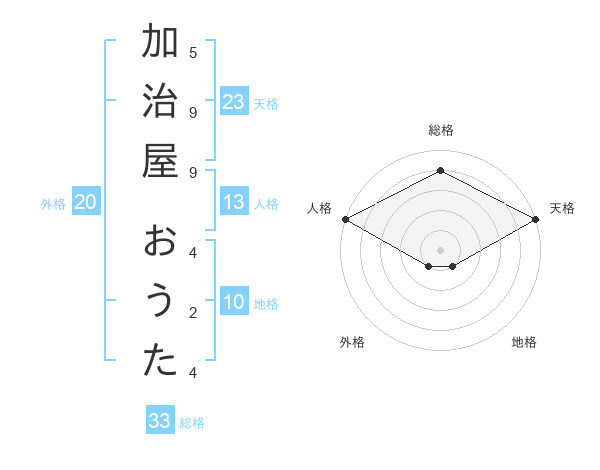 加治屋 おうたさんを姓名の画数から五運を鑑定