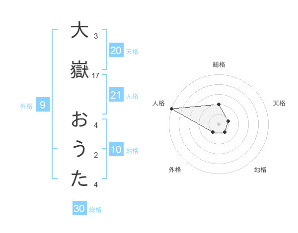 大嶽 おうたさんを姓名の画数から五運を鑑定