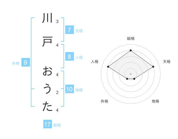 川戸 おうたさんを姓名の画数から五運を鑑定