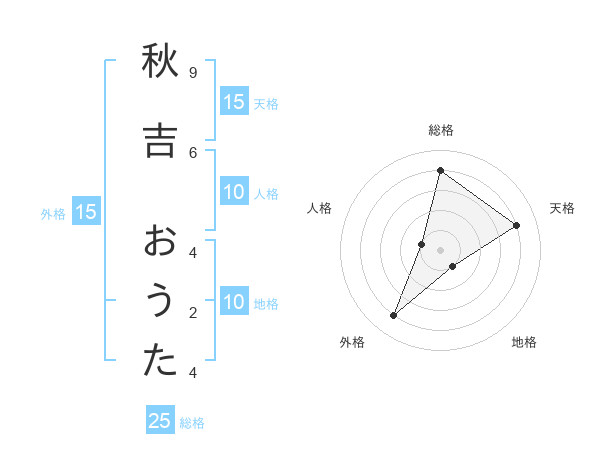 秋吉 おうたさんの総格は25画の4点!