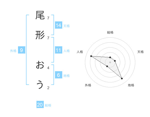 尾形 おうさんの総格は20画の1点!