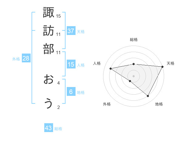 諏訪部 おうさんを姓名の画数から五運を鑑定