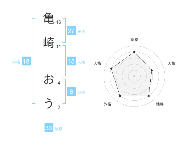 亀崎 おうさんの天格は27画の3点!