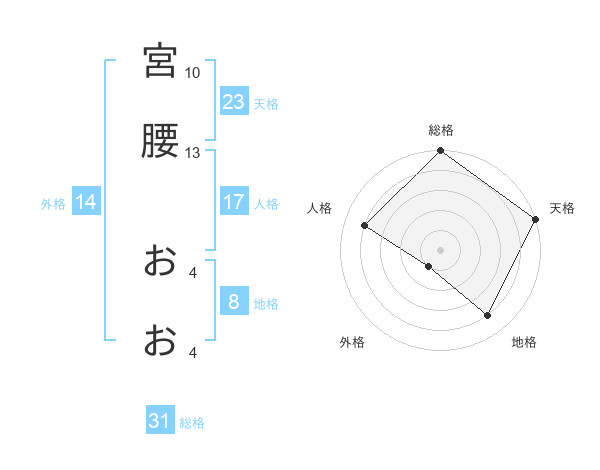 宮腰 おおさんの総格は31画の5点!
