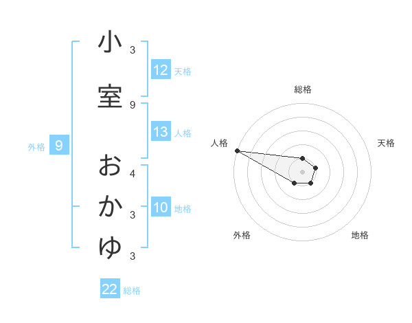 小室 おかゆさんを姓名の画数から五運を鑑定