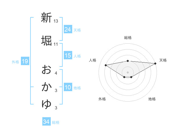 新堀 おかゆさんの総格は34画の2点!