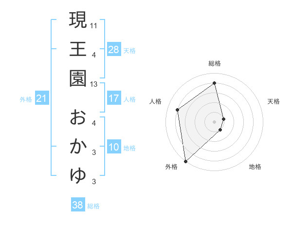 現王園 おかゆさんを姓名の画数から五運を鑑定