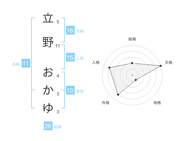 立野 おかゆさんの天格は16画の5点!