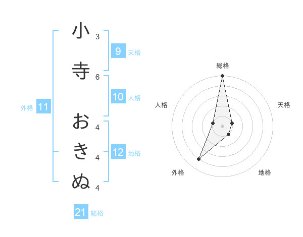 小寺 おきぬさんの総格は21画の5点!