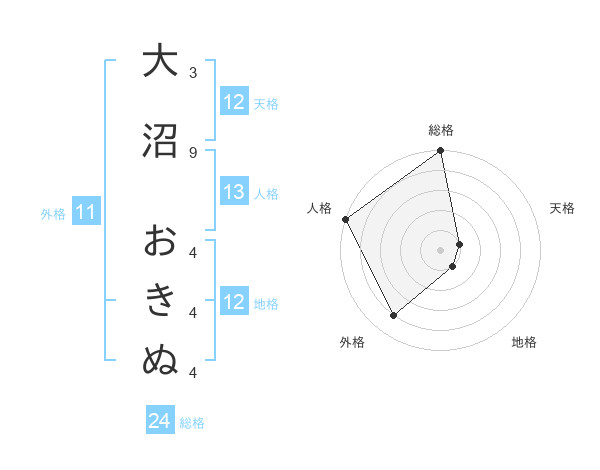 大沼 おきぬさんを姓名の画数から五運を鑑定