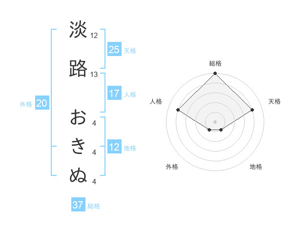 淡路 おきぬさんを姓名の画数から五運を鑑定