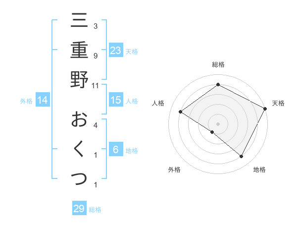 三重野 おくつさんを姓名の画数から五運を鑑定