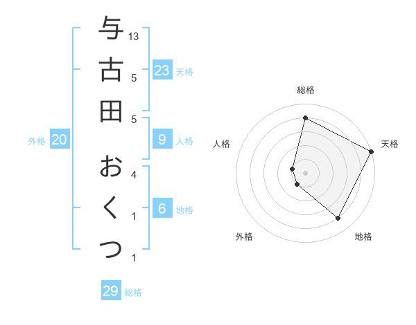 与古田 おくつさんの天格は23画の5点!