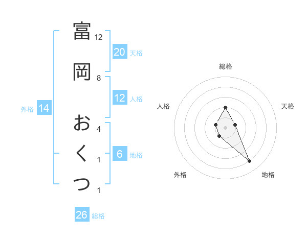 富岡 おくつさんを姓名の画数から五運を鑑定