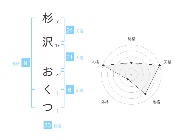 杉沢 おくつさんを姓名の画数から五運を鑑定