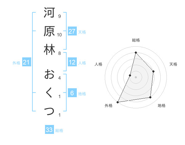 河原林 おくつさんを姓名の画数から五運を鑑定