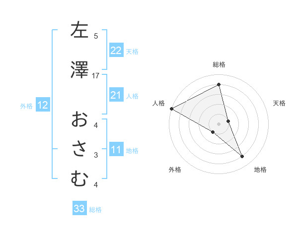左澤 おさむさんの総格は33画の4点!