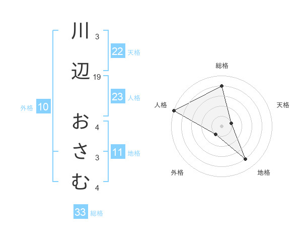 川辺 おさむさんを姓名の画数から五運を鑑定