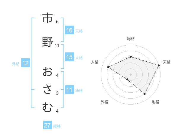 市野 おさむさんの総格は27画の3点!