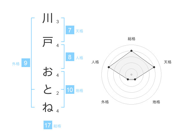 川戸 おとねさんを姓名の画数から五運を鑑定