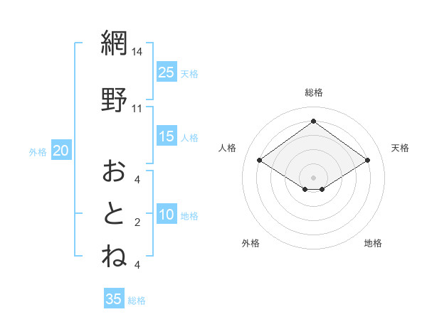 占い結果は姓名判断である以上、良い場合も悪い場合もありますが、決してお名前を誹謗中傷するものでなく、画数の自動計算によって得られたものです。また、本サイトの検索によって得られた鑑定結果で、第三者を誹謗中傷したり名誉を棄損するような行為を禁じます。